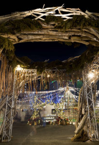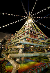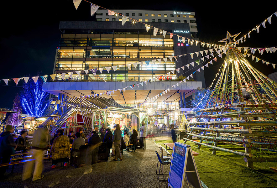 確かに、熊本のそれも伝統的な形式であるのは同じだ。ほかと大きく異なっていたのは、中央にあるクリスマスツリーが竹でできていて、さらにジャングルジムになっているということ。大人たちが屋台の料理をつまみに、お酒を飲みながらおしゃべりに花を咲かせている間、子どもたちはジャングルジムで遊べるというわけだ。