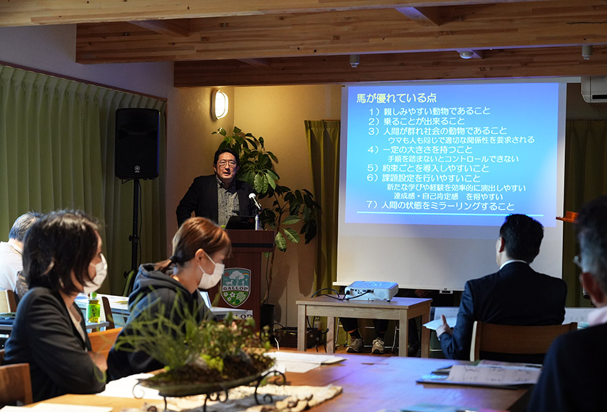 それが今回(2025年11月29日)、のぞえ牧場 ギャロップで開催された「馬の多様な利活用を推進する講習会 〜ホースセラピー実践にむけて〜」で東京農業大学の川嶋准教授の講演をお聞きして、その可能性の広がりを感じたので共有させてほしい。